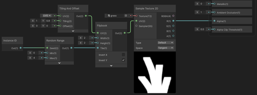 snippet from earlier (e.g. with Random Range to select a random tile from the texture), we need to alter that function to return the updated ID, as unity_InstanceID